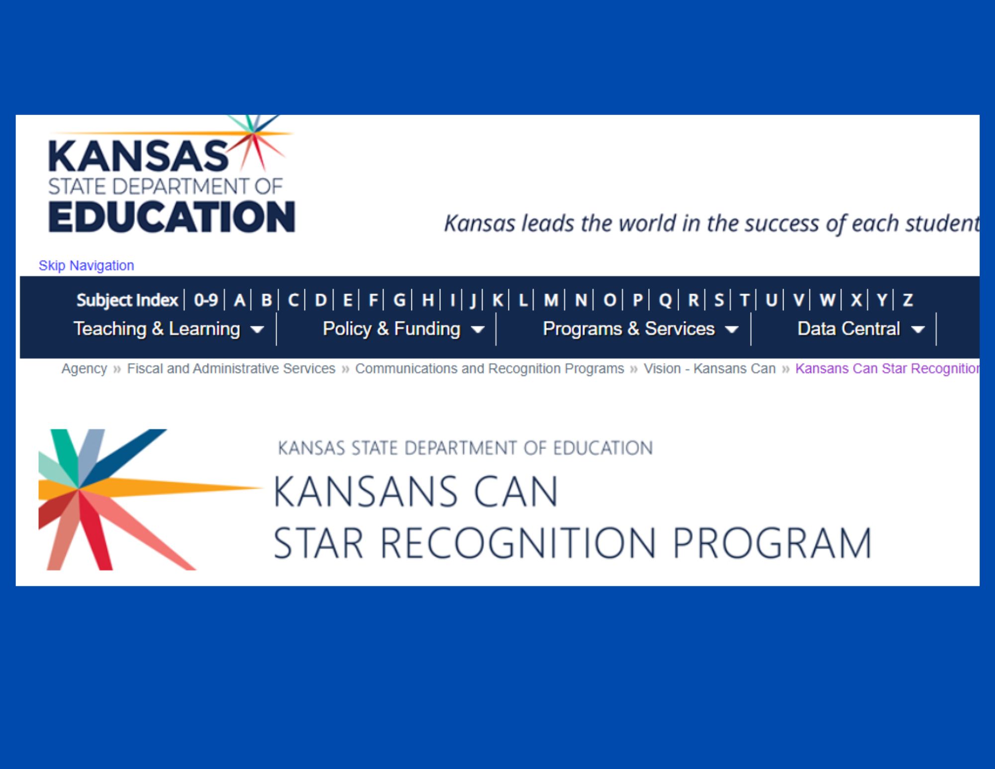 The Kansans Can Star Recognition Program aligns with the state’s vision of “Kansas leading the world in the success of each student.”